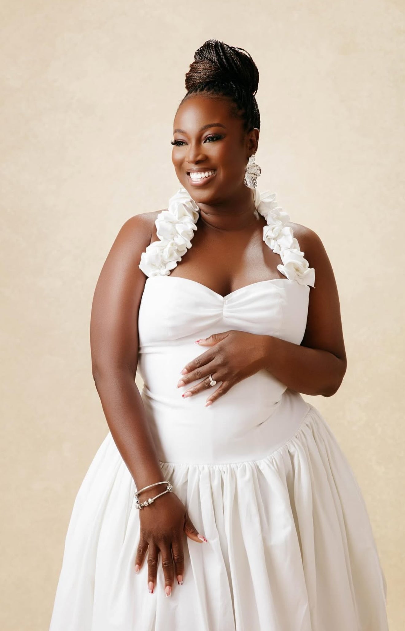 Steph at brunch white dress
